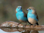 Cordon Blue Waxbill has powder-blue face, breast, rump, and flanks with pale brown upperparts. The female is paler than the male and the blue is confined to the rump, tail, head, and upper breast, with the rest of the underparts being buffy brown. They measure 12–13 cm in length.